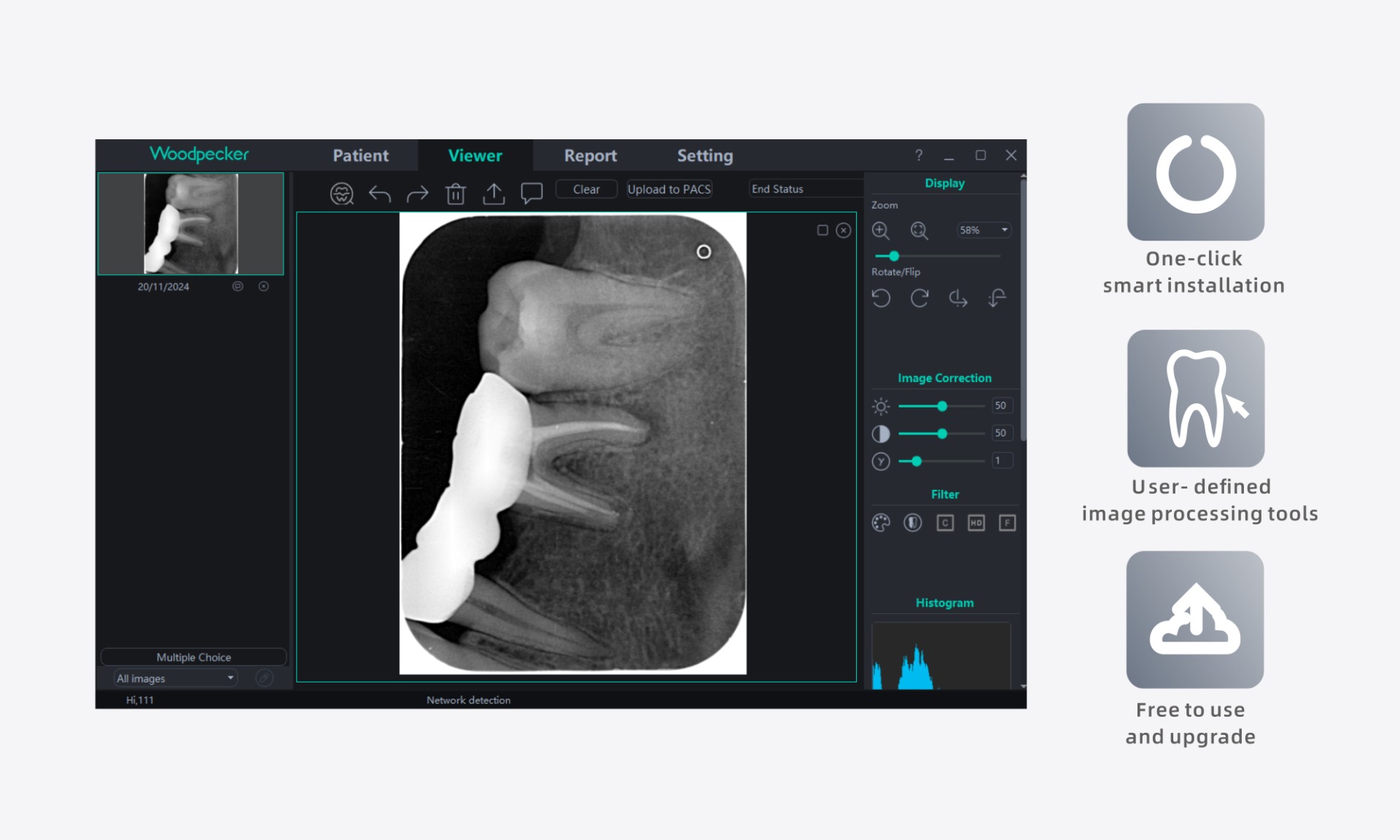 Bezkonkurenčné detaily: Rozlíšenie 25 lp/mm a 16-bitový ADC čip umožňujú identifikáciu aj najmenších bifurkácií koreňov a parodontálnych lézií.